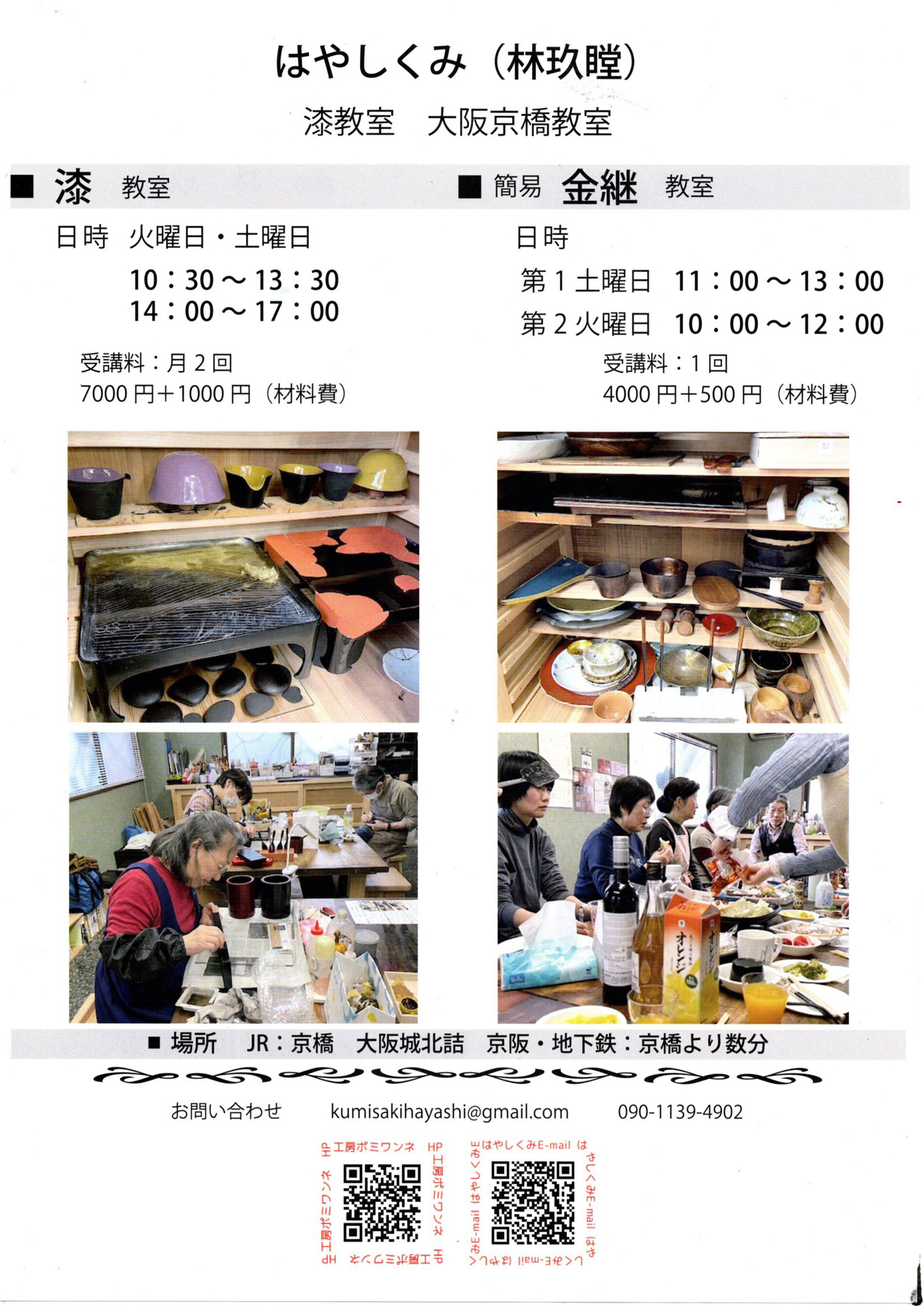 9月から、芦屋金継ぎ教室で土曜日の教室を追加開講いたします。
