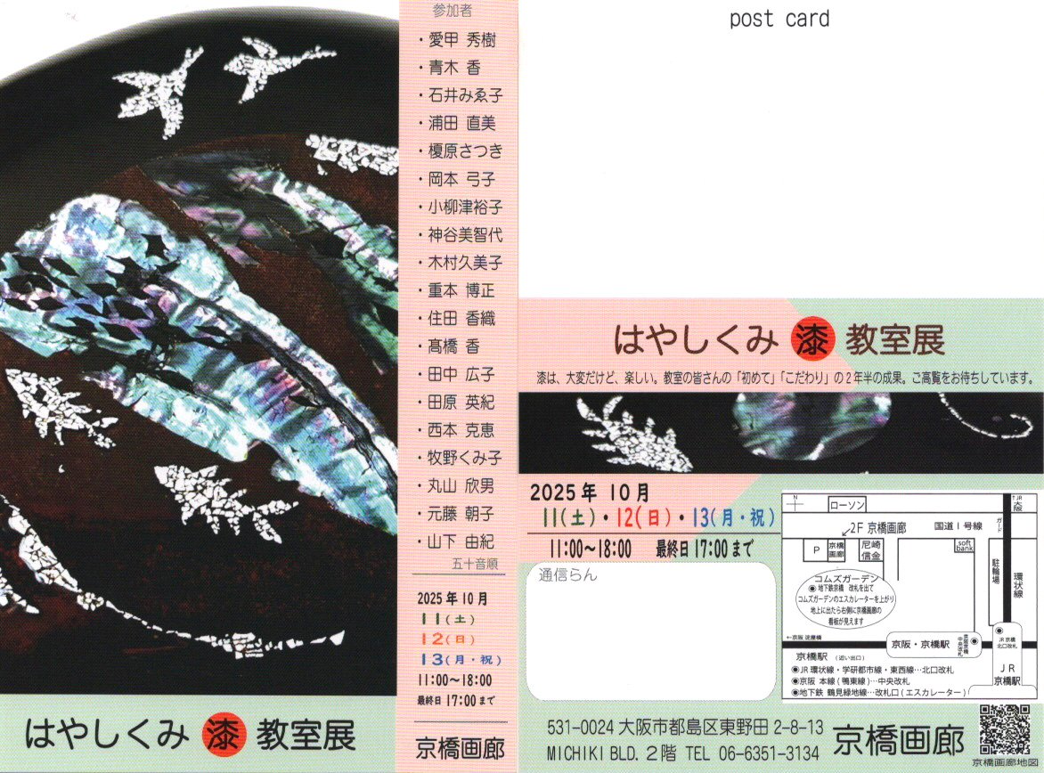 主催する漆教室の作品展です。